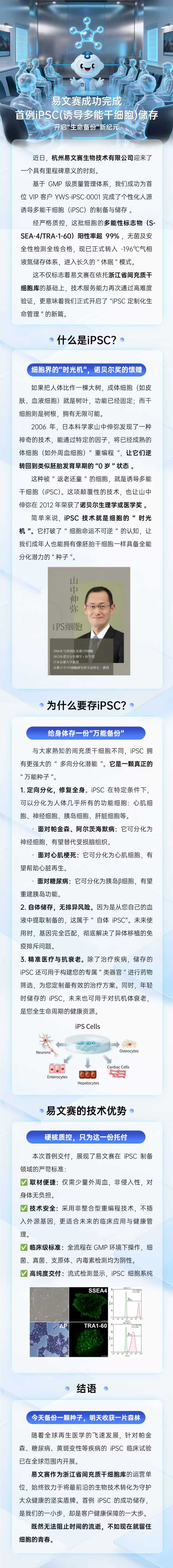 易文赛已完成多例iPSC(诱导多能干细胞)储存,开启“生命备份”新纪元